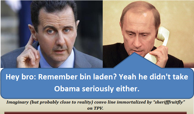 Lulz! You don’t have to be a rocket scientist to understand that Russia and Syria are responding the way they are because they finally realized that President Obama means business. Any one who is trying to spin this as some genius offer from Putin, because he is a man of peace, is either a total idiot or a propagandist spin doctor consumed with hatred of President Obama.